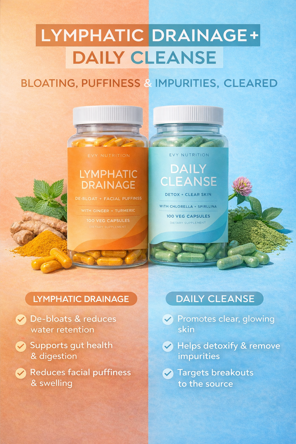 120 - Day Supply | Daily cleanse + Lympahtic Drainage. A duo designer for clear skin and facial puffiness!